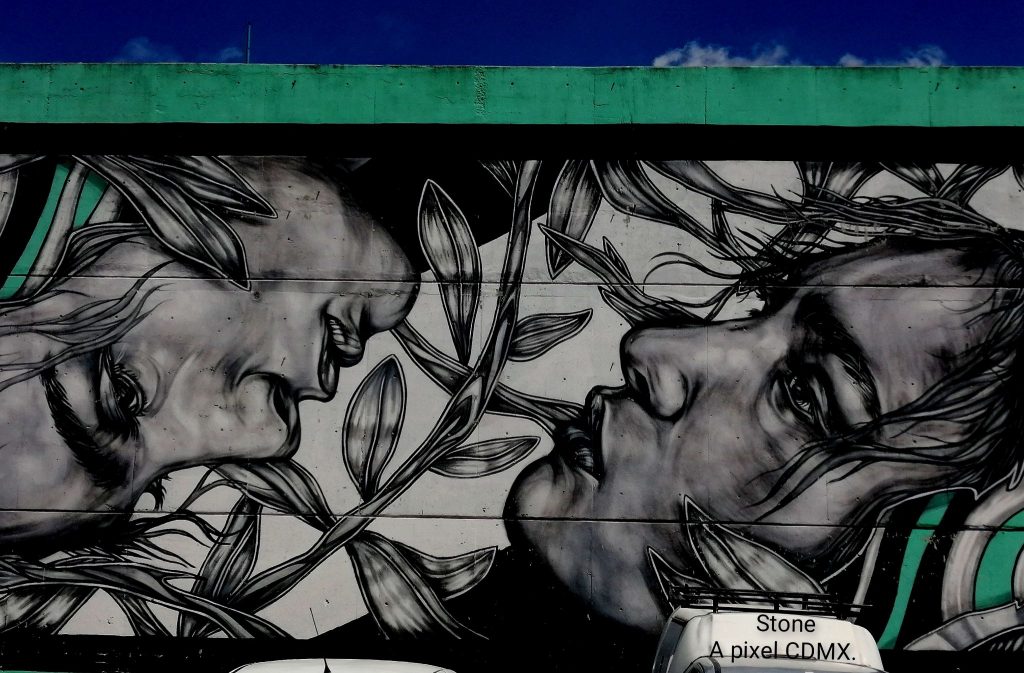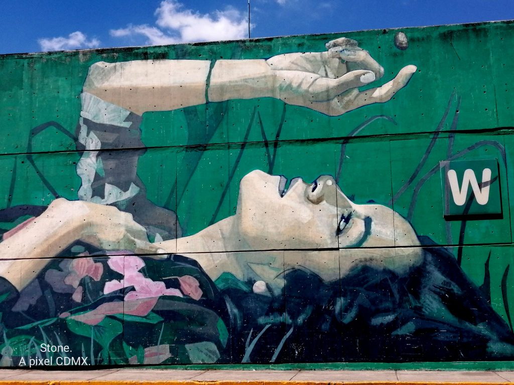 En el exilio de tus ojos, Sin poder dormir en tu sueños Mis manos añoran tus manos Y tu ausencia me mata (Stone) Ubicado en la Central de abasto de la ciudad de México. Autor: Anónimo.