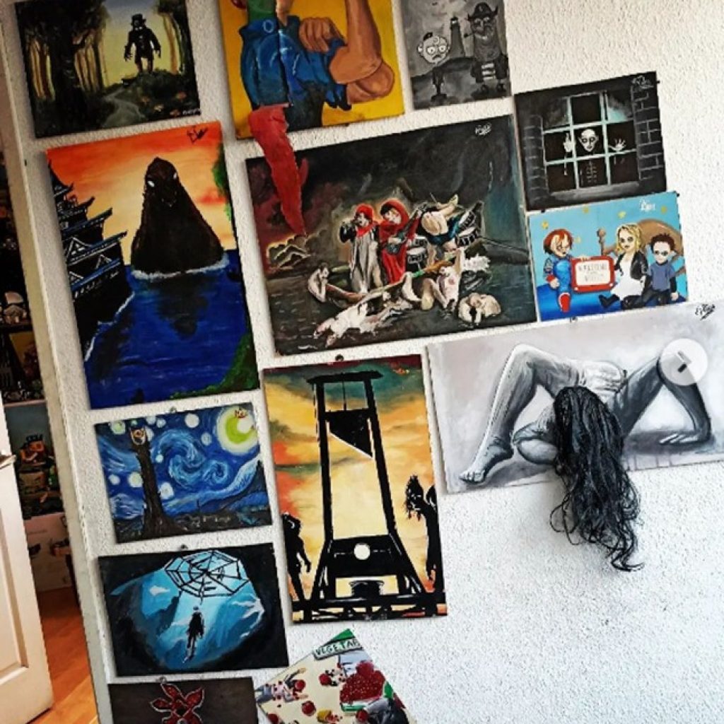 Desde que tengo memoria he tenido fascinación por pintar todo aquello que la gente prefiere ignorar, cierta oscuridad que se oculta en cada uno de nosotros, lo que para muchos seria la maldad lo siniestro y la muerte, para mí es identificar el lado “atractivo” de ello.